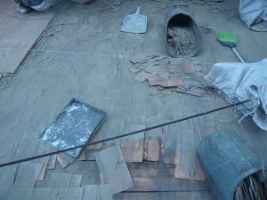 今日から元酒蔵の屋根の葺き替え工事を始めた。