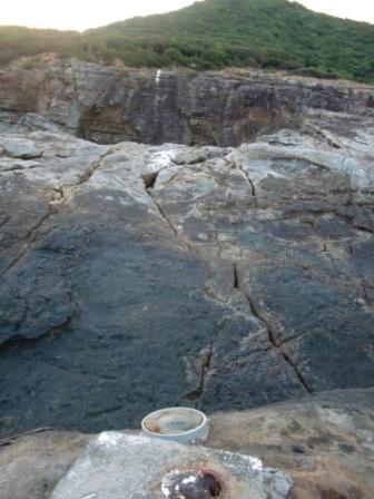 漁業基点という金属製(真鍮)の標がある、この見通しの磯にはペンキで標をつけている。