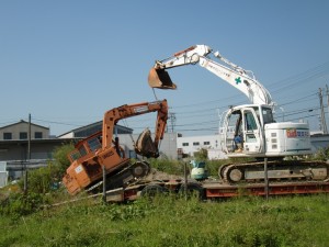 エンジンはかかるが、操作レバーを動かしてもまったく動かなくなってしまった多分メインポンプが潰れたのだろう。修理を依頼したが型が古いので部品がなく中古を探すしかない見つかったとしても50万円位はいるだろう。いろいろ聞いてみて部品どりをして海外へ輸出することに決めた。