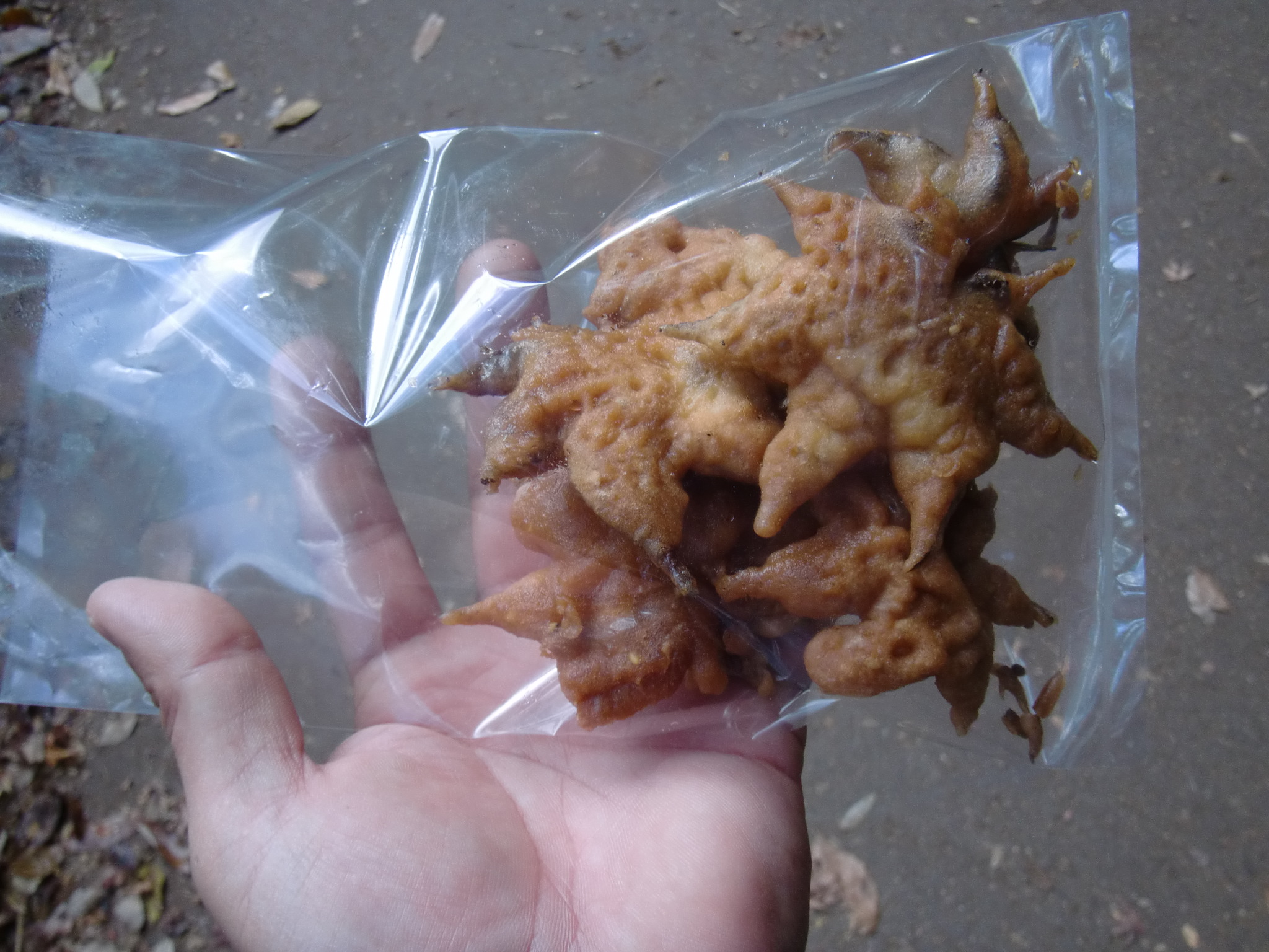 気になる紅葉の天ぷらをゲット、見た目もそうだが思っていたものとは全然ちがった、塩をつけて食べるようなものかとおもっていたがカリントみたいなものだった。